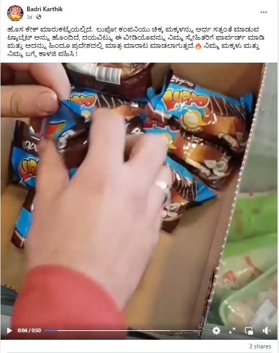 ಈ ಕುರಿತು ಫೇಸ್ಬುಕ್ನಲ್ಲಿ ಕಂಡುಬಂದ ಕ್ಲೇಮಿನಲ್ಲಿ “ಹೊಸ ಕೇಕ್ ಮಾರುಕಟ್ಟೆಯಲ್ಲಿದೆ. ಲುಪೋ ಕಂಪನಿಯು ಚಿಕ್ಕ ಮಕ್ಕಳನ್ನು ಅರ್ಧ ಸತ್ತಂತೆ ಮಾಡುವ ಟ್ಯಾಬ್ಲೆಟ್ ಅನ್ನು ಹೊಂದಿದೆ, ದಯವಿಟ್ಟು ಈ ವೀಡಿಯೊವನ್ನು ನಿಮ್ಮ ಸ್ನೇಹಿತರಿಗೆ ಫಾರ್ವರ್ಡ್ ಮಾಡಿ ಮತ್ತು ಅದನ್ನು ಹಿಂದೂ ಪ್ರದೇಶದಲ್ಲಿ ಮಾತ್ರ ಮಾರಾಟ ಮಾಡಲಾಗುತ್ತದೆ. ನಿಮ್ಮ ಮಕ್ಕಳು ಮತ್ತು ನಿಮ್ಮ ಬಗ್ಗೆ ಕಾಳಜಿ ವಹಿಸಿ” ಎಂದಿದೆ.