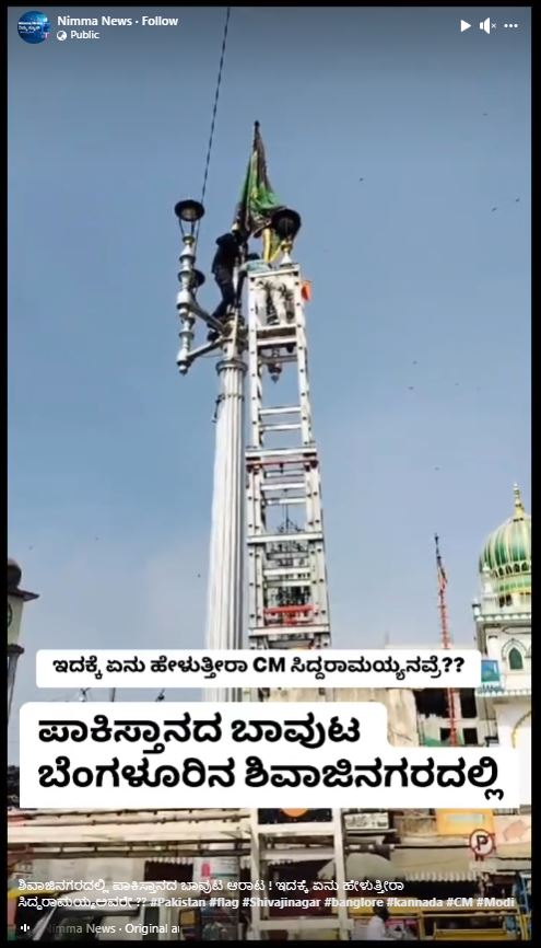 ಪಾಕಿಸ್ಥಾನದ ಬಾವುಟ ಬೆಂಗಳೂರಿನ ಶಿವಾಜಿನಗರದಲ್ಲಿ ಹಾರಾಡುತ್ತಿದೆ ಎಂಬ ಹೇಳಿಕೆಯುಳ್ಳ ವೀಡಿಯೋವೊಂದು ಸಾಮಾಜಿಕ ಮಾಧ್ಯಮಗಳಲ್ಲಿ ಹರಿದಾಡಿದೆ.