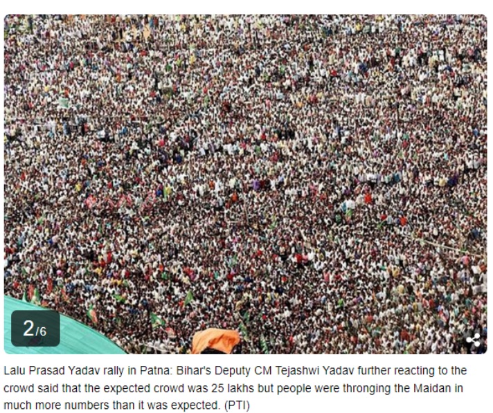 ಇಂಡಿಯಾ ಮೈತ್ರಿಕೂಟದ ರಾಲಿಯಲ್ಲಿ ಜನಸಾಗರವೇ ಸೇರಿದೆ ಎಂದು ಸಾಮಾಜಿಕ ಸಾಮಾಜಿಕ ಮಾಧ್ಯಮಗಳಲ್ಲಿ ಚಿತ್ರಗಳನ್ನು ಹಂಚಿಕೊಳ್ಳಲಾಗುತ್ತಿದೆ.