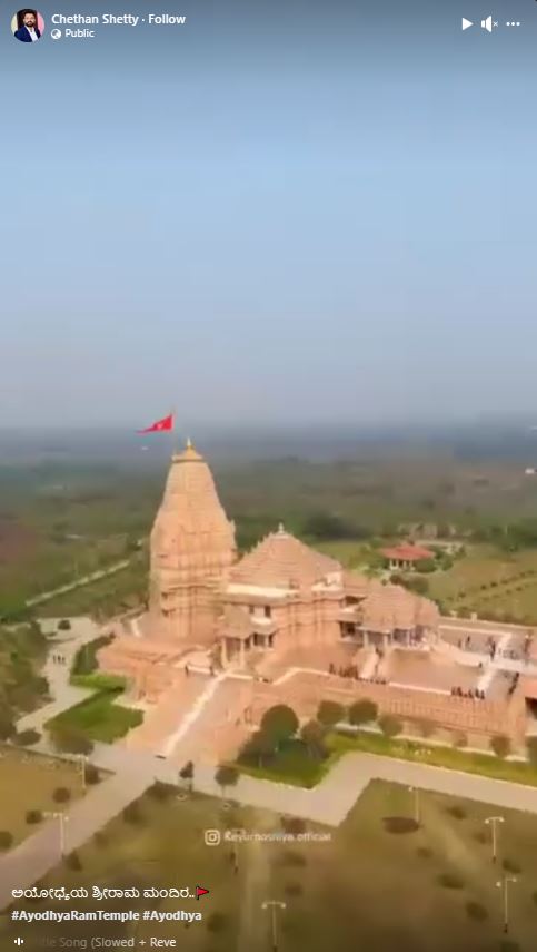 ಅಯೋಧ್ಯೆಯ ರಾಮ ಮಂದಿರ ಎಂದು ವೀಡಿಯೋ ಒಂದು ಸಾಮಾಜಿಕ ಜಾಲತಾಣದಲ್ಲಿ ಓಡಾಡಿದೆ. ಆದರೆ ತನಿಖೆಯಲ್ಲಿ ಕಂಡುಬಂದಂತೆ ಇದು ಅಯೋಧ್ಯೆಯ ರಾಮ ಮಂದಿರವಲ್ಲ ಬದಲಾಗಿ ಗುಜರಾತ್ನ ಕೋದಲ್ಧಾಮ್ ದೇಗುಲ ಎಂದು ತಿಳಿದುಬಂದಿದೆ. ಈ ಬಗ್ಗೆ ವಿವರಗಳನ್ನು ಇಲ್ಲಿ ಓದಿ