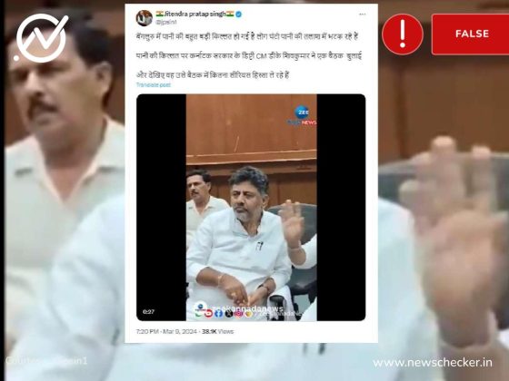 ಬೆಂಗಳೂರು ಕುಡಿಯುವ ನೀರಿನ ಕುರಿತ ಸಭೆಯಲ್ಲಿ ಡಿ.ಕೆ. ಶಿವಕುಮಾರ್ ಚಿಪ್ಸ್ ತಿನ್ನುತ್ತಿದ್ದರು ಅರ್ಥಾತ್, ಸಮಸ್ಯೆ ಬಗ್ಗೆ ಅವರು ಅಷ್ಟು ಗಂಭೀರವಾಗಿರಲಿಲ್ಲ ಎಂಬರ್ಥದಲ್ಲಿ ವೀಡಿಯೋ ಒಂದನ್ನು ಹಂಚಿಕೊಳ್ಳಲಾಗುತ್ತಿದೆ. ಈ ಬಗ್ಗೆ ನ್ಯೂಸ್ ಚೆಕರ್ ತನಿಖೆ ನಡೆಸಿದಾಗ, ವೈರಲ್ ವೀಡಿಯೋ ಬೆಂಗಳೂರಿನ ನೀರಿನ ಬಿಕ್ಕಟ್ಟಿನ ಬಗ್ಗೆ ಕರೆದ ಸಭೆಯದ್ದಲ್ಲ, ಅದು ಸುಮಾರು ಮೂರು ತಿಂಗಳ ಹಿಂದೆ ಬೆಳಗಾವಿಯಲ್ಲಿ ನಡೆದ ಸಭೆಯ ವೀಡಿಯೋ ಆಗಿದೆ ಎಂದು ಕಂಡುಬಂದಿದೆ. ಈ ಕುರಿತು ಹೆಚ್ಚಿನ ವಿವರಗಳನ್ನು ಇಲ್ಲಿ ಓದಿ
