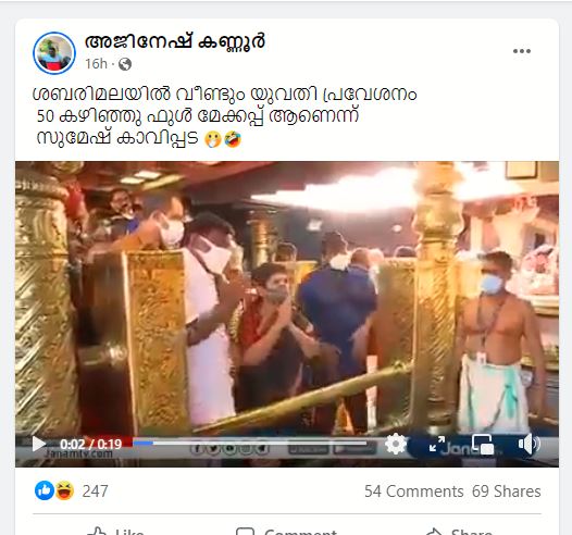 ശബരിമലയിൽ 50 വയസിന് താഴെയുള്ള സ്ത്രീ പ്രവേശിച്ചുവെന്നത് തെറ്റായ പ്രചാരണമാണ് എന്ന് ഞങ്ങളുടെ അന്വേഷണത്തിൽ ബോധ്യപ്പെട്ടു.
