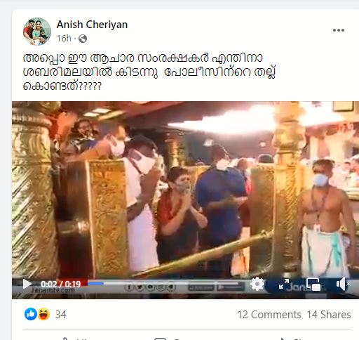 “ആചാര സംരക്ഷകർ ആരും ഈ വീഡിയോ കണ്ടില്ലേ ആവോ. ഇത് റിപ്പോർട്ട് ചെയ്യുന്ന ജനം tv യുടെ ഒരു അവസ്ഥയാണ് ഞാൻ ആലോചിക്കുന്നത്,” എന്നാണ് പോസ്റ്റ്പ റയുന്നത്.