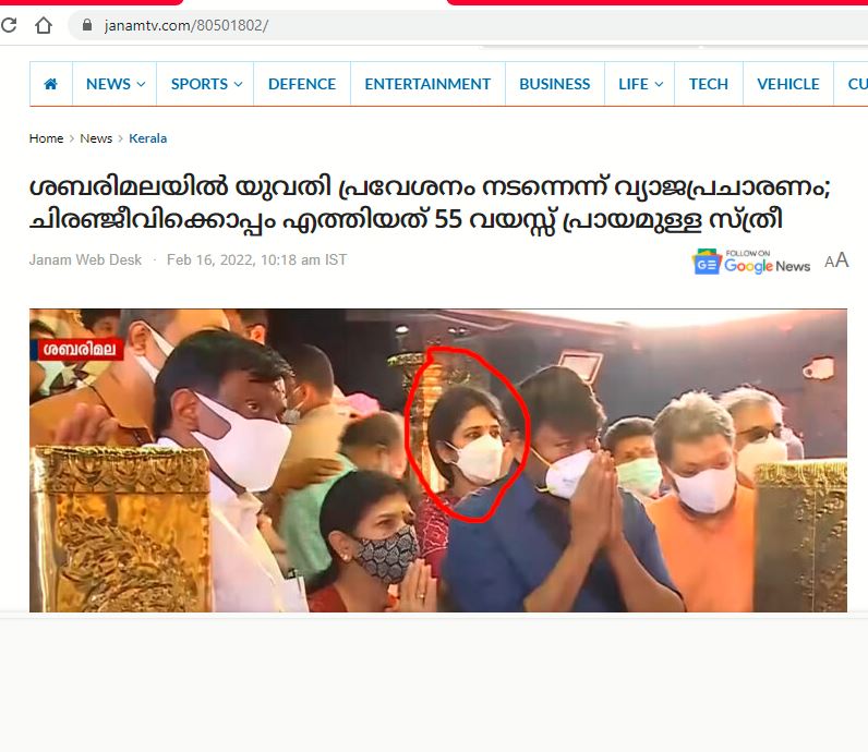 സംഘപരിവാർ അനുകൂല നിലപാട് എടുക്കുന്ന ജനം ടിവി, ചിരഞ്ജീവി ശബരിമല കയറിയതുമായി ബന്ധപ്പെട്ടു കൊടുത്ത വാർത്ത ഷെയർ ചെയ്തു കൊണ്ടാണ് ഈ പ്രചരണം. യുവതി പ്രവേശനത്തിനെതിരെ ശക്തമായ നിലപാട് എടുത്ത ചാനലാണ് ജനം ടിവി. “ജനം ടിവി ഇപ്പോൾ എന്ത് പറയുന്നു” എന്ന ചോദ്യത്തോടെയാണ് പലരും പോസ്റ്റ് ഷെയർ ചെയ്യുന്നത്.