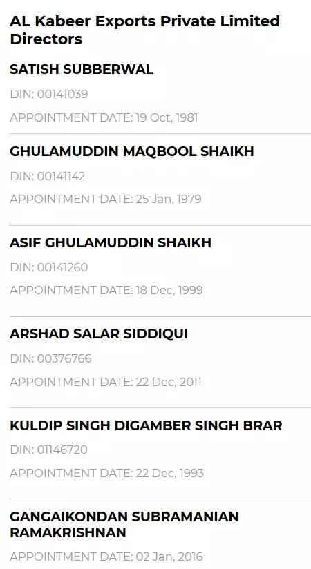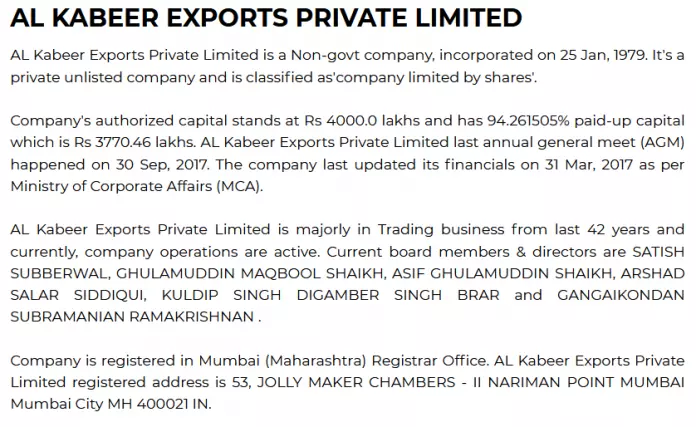 അൽ-കബീർ കമ്പനിക്ക് 6 ഡയറക്ടർമാരാണുള്ളത്. അതിൽ മൂന്ന് പേർ മുസ്ലീങ്ങളാണ് എന്ന് ഞങ്ങളുടെ അന്വേഷണത്തിൽ വ്യക്തമായി.1979-ൽ സ്ഥാപിതമായ ഈ കമ്പനി അക്കാലത്ത് ഗുലാമുദ്ദീൻ മഖ്ബൂൽ ഷെയ്ഖിന്റെ ഉടമസ്ഥതയിലായിരുന്നു. മറ്റുള്ള ഡയറക്ടമാർ പിന്നീട് വന്നവരാണ്,എന്ന് ഞങ്ങളുടെ അന്വേഷണം വ്യക്തമാക്കുന്നു. യുപിയിൽ അല്ല, മഹാരാഷ്ട്രയിലാണ് ആ സ്ഥാപനം രജിസ്റ്റർ ചെയ്തിരിക്കുന്നത്.