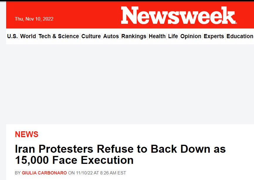 ഇത് സൂചനയായി എടുത്ത്, ഞങ്ങൾ Google-ൽ ”Newsweek, “ “Iran,” “15,000” എന്നീ വാക്കുകൾ ഉപയോഗിച്ച് ഒരു കീവേഡ് സേർച്ച് നടത്തി, ഇത് 2022 നവംബർ 10ൽ ഈ പ്രമുഖ വാർത്താ മാധ്യമം കൊടുത്ത ‘Iran Protesters Refuse to Back Down as First Execution Sentence Handed Down.’ എന്ന തലക്കെട്ടിൽ ഒരു ലേഖനത്തിലേക്ക് ഞങ്ങളെ നയിച്ചു.