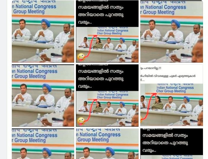ചോർ ഗ്രൂപ്പ് മീറ്റിംഗ് എന്ന ബാനർ വെച്ച ഒരു കോൺഗ്രസ് മീറ്റിംഗിന്റെ പടം വൈറൽ ആവുന്നുണ്ട്.
