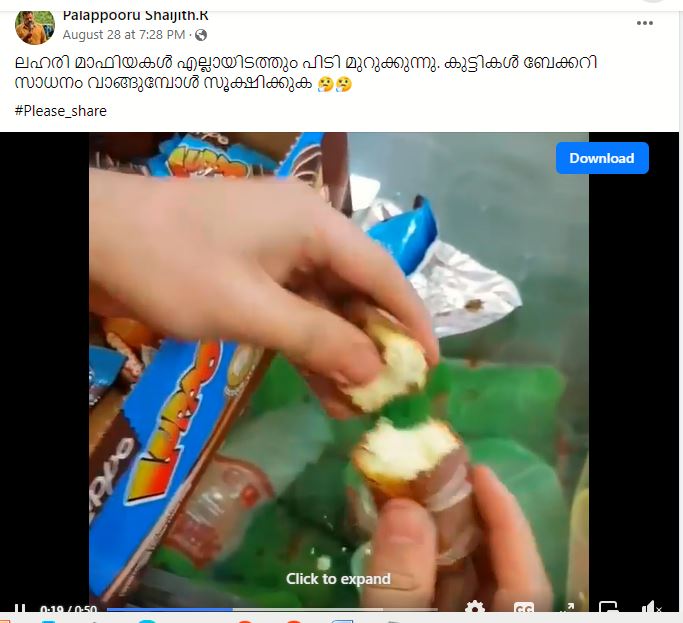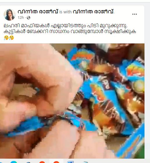 ലുപ്പോ’ എന്ന ചോക്ലേറ്റ് കേക്കിൽ ലഹരി മരുന്ന് കണ്ടെത്തിയെന്ന് ഒരു അവകാശവാദം സമൂഹമാധ്യമങ്ങളിൽ പ്രചരിക്കുന്നുണ്ട്. ”മാഫിയകൾ എല്ലായിടത്തും പിടി മുറുക്കുന്നു. കുട്ടികൾ ബേക്കറി സാധനം വാങ്ങുമ്പോൾ സൂക്ഷിക്കുക.” എന്ന വിവരണത്തോടെയാണ് പോസ്റ്റുകൾ വൈറലാവുന്നുന്നത്.Sunil N എന്ന പ്രൊഫൈലിൽ നിന്നും സഖാവ്: പിണറായി വിജയൻ ഗ്രൂപ്പിലിട്ട പോസ്റ്റിന് ഞങ്ങൾ കാണുമ്പോൾ 90 ഷെയറുകൾ ഉണ്ടായിരുന്നു.
