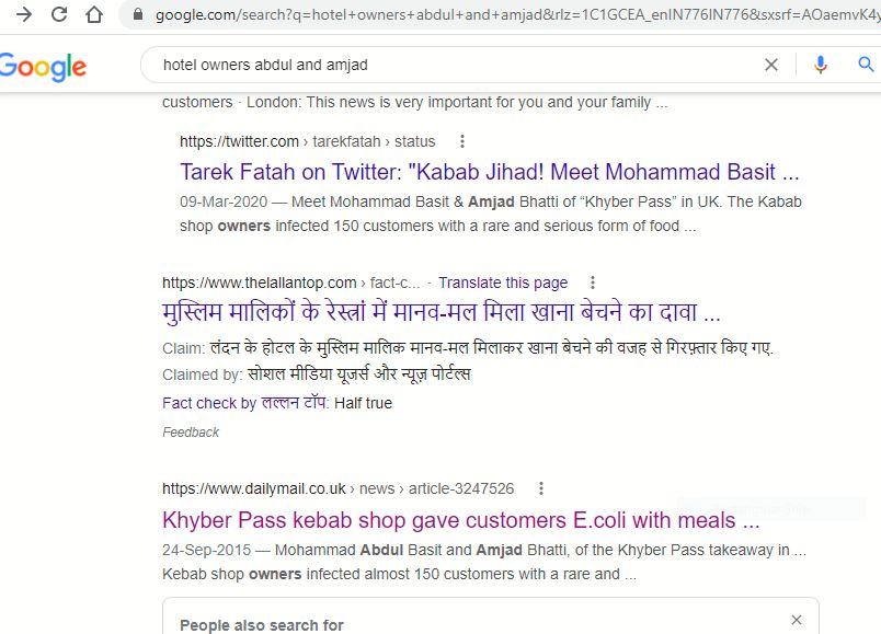 വൈറൽ ഫോർവേഡിൽ നിന്നും കിട്ടിയ കീവേഡുകൾ ഉപയോഗിച്ച് ഞങ്ങൾ ഗൂഗിൾ സെർച്ച് നടത്തി. നോട്ടിംഗ്ഹാമിലെ ഖൈബർ പാസ് എന്ന ഭക്ഷണശാലയിലാണ് സംഭവം നടന്നതെന്ന് ഞങ്ങൾ കണ്ടെത്തി.