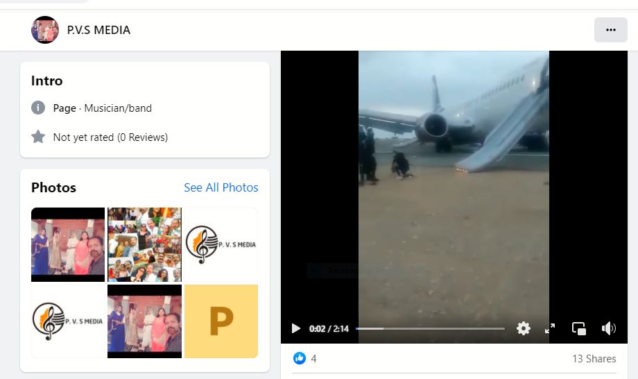 P.V.S MEDIA എന്ന ഐഡിയിൽ നിന്നുള്ള പോസ്റ്റിനു 13 ഷെയറുകൾ ഞങ്ങൾ കണ്ട സമയത്ത് ഉണ്ടായിരുന്നു. കർബലയിലേക്കുള്ള ഇന്തോനേഷ്യ വിമാനം ഖോമിനും ടെഹ്റാനും ഇടയിൽ പ്രശ്നത്തെ തുടർന്ന് ഇഷ്ഫാനിൽ അടിയന്തര ലാൻഡിംഗ് നടത്തുന്നത് എന്ന വകാശവാദത്തോടെ വിമാനത്തിന്റെ ഗോവണി വഴി ആളുകൾ ഇറങ്ങി ഓടുന്ന ദൃശ്യം മാത്രമുള്ള പോസ്റ്റുകളും പ്രചാരത്തിലുണ്ട്. അത്തരം ഒരു വീഡിയോ ആണ് P .V.S MEDIA എന്ന ഐഡിയിൽ നിന്നും പോസ്റ്റ് ചെയ്തിരിക്കുന്നത്.