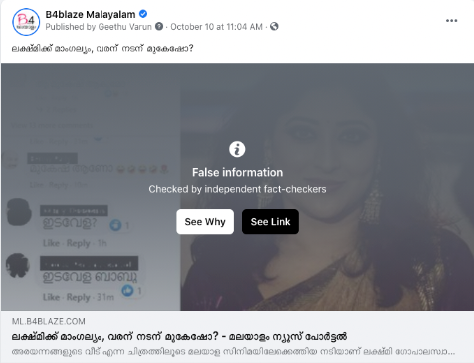 വിക്കിപീഡിയ പേജിൽ കൊടുത്തിരിക്കുന്ന വിവരത്തിന്റെ സ്രോതസ്സ് എന്താണ് എന്ന് വ്യക്തമാക്കിയിട്ടുമില്ല. ന്യൂസ് 18 കേരളയും നടിയുടെ വിവാഹ വാർത്ത വ്യജമാണ് എന്ന് വ്യക്തമാക്കി വാർത്ത കൊടുത്തിട്ടുണ്ട്.