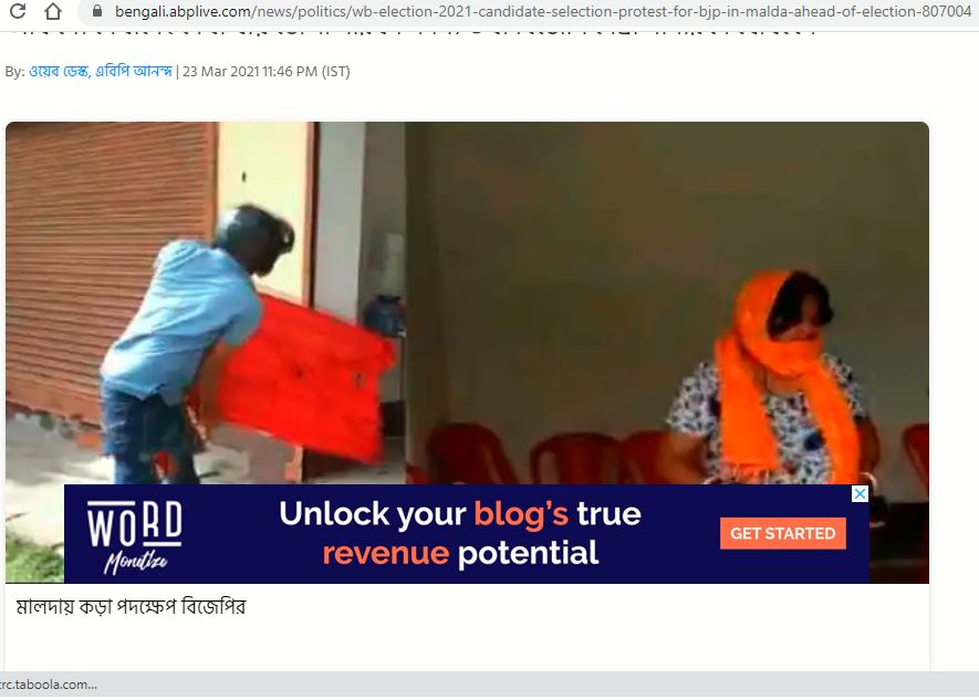 തുടർന്ന് ഗൂഗിൾ ട്രാൻസ്ലേറ്റർ വഴി മലയാളത്തിലേക്ക് അതിൽ കൊടുത്തിരിക്കുന്ന വാർത്ത പരിഭാഷപ്പെടുത്തിയപ്പോൾ അവർ മാൾഡ ജില്ലാ കൗൺസിൽ അംഗവും ബിജെപി നേതാവുമായ സാഗരിക സർക്കാരാണ് എന്ന് മനസിലായി. മാർച്ച് 18 ന് മാൽഡ ജില്ലയിൽ 12 സീറ്റുകളിലേക്ക് ബിജെപി സ്ഥാനാർത്ഥികളെ പ്രഖ്യാപിച്ചതിനെ തുടർന്ന് 6 സീറ്റുകളിലേക്കുള്ള സ്ഥാനാർത്ഥികളോടുള്ള അതൃപ്തി പാർട്ടിക്കുള്ളിൽ ഉണ്ടായി. അടുത്ത ദിവസം ഗാസോളിലെ ബിജെപിയുടെ പാർട്ടി ഓഫീസ് നശിപ്പിക്കപ്പെട്ടു. ജില്ലാ പരിഷത്ത് അംഗവും ബിജെപി നേതാവുമായ സാഗരിക സർക്കാരും അവിടെ ഉണ്ടായിരുന്നു. അവരെ സസ്പെൻഡ് ചെയ്തുവെന്നാണ് വാർത്തയിൽ പറയുന്നത്.