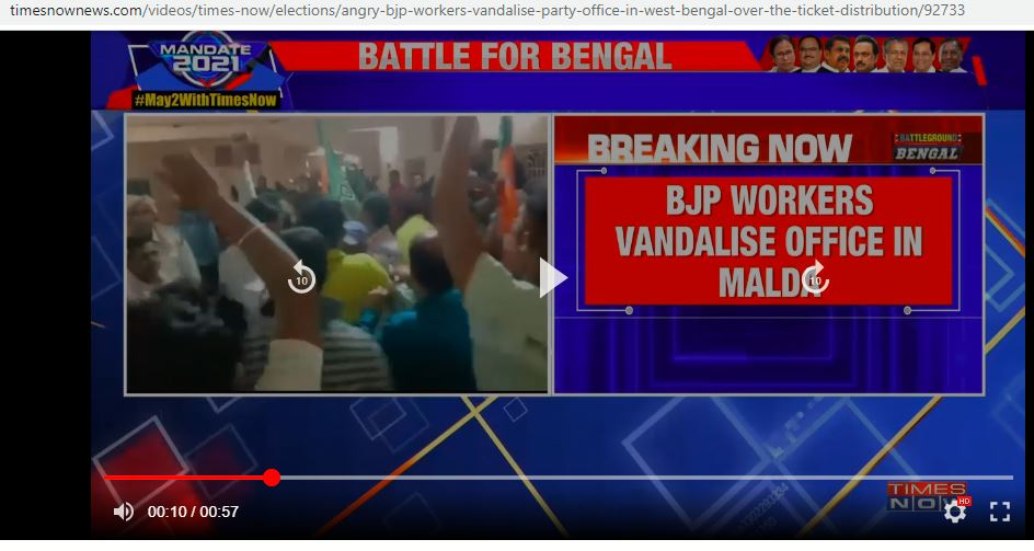 ബി ജെ പി പ്രവർത്തകർ സ്വന്തം പാർട്ടി ഓഫീസ് ആക്രമിച്ചുവെന്ന് വാർത്ത നെറ്റിൽ തിരഞ്ഞപ്പോൾ ടൈംസ് നൗവിന്റെ ലിങ്ക് കിട്ടി.ബംഗാളിലെ മാൽഡയിൽ നിന്നുള്ള വാർത്തയായിരുന്നു അത്.മാർച്ച് 19നായിരുന്നു സംഭവം.അത് കോവിഡ് നിയന്ത്രണത്തിൽ സർക്കാരിന് പറ്റിയ പാളിച്ച കൊണ്ടായിരുന്നില്ല.