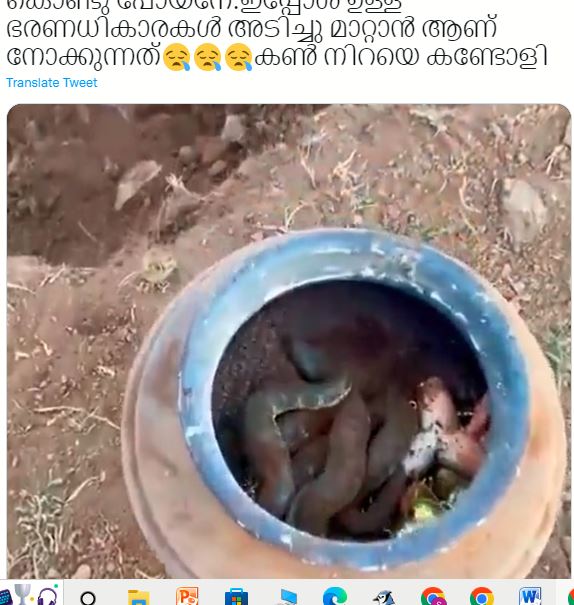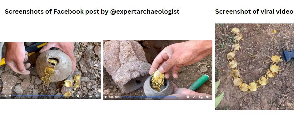 ഒരു മനുഷ്യൻ ഒരു പുരാതന “നിധി പാത്രം” കണ്ടെത്തുന്നതാണ് വൈറൽ വീഡിയോയുടെ ഉള്ളടക്കം. ‘ഖനനത്തിനിടെ’ ഒരാൾ അടഞ്ഞിരിക്കുന്ന പാത്രം തുറക്കുകയും അതിനുള്ളിൽ ഒരു പാമ്പ് കാവൽ നിൽക്കുന്ന ‘മറഞ്ഞിരിക്കുന്ന നിധി’ കണ്ടെത്തുകയും ചെയ്യുന്നതോടെയാണ് വീഡിയോ ആരംഭിക്കുന്നത്. പാത്രത്തിനുള്ളിൽ ചത്ത തവളയെയും കാണാം. പാമ്പിനെ പുറത്താക്കിയ ശേഷം, മനുഷ്യൻ ഒരു സ്വർണ്ണ ചെയിനും നിരവധി സ്വർണ്ണ നാണയങ്ങളും കണ്ടെത്തുന്നു. തുടർന്ന് പാത്രത്തിനുള്ളിൽ ഉള്ളതെല്ലാം പുറത്തെടുക്കുന്നു.