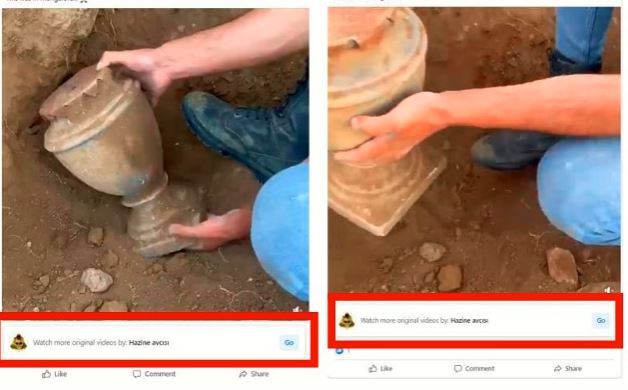 ഇതിനെത്തുടർന്ന്, വൈറൽ വീഡിയോയുള്ള വിവിധ ഫേസ്ബുക്ക് പോസ്റ്റുകൾ ഞങ്ങൾ സ്കാൻ ചെയ്തു. അത്തരം മിക്ക പോസ്റ്റുകൾക്കു കീഴിലും “കൂടുതൽ യഥാർത്ഥ വീഡിയോകൾ കാണുക: Hazine avcısı” എന്ന ഒരു ടാബ് ഞങ്ങൾ കണ്ടു.