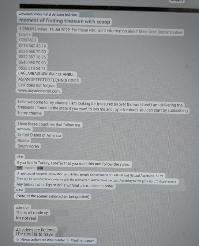 ഇംഗ്ലീഷ്, ടർക്കിഷ്, ജോർജിയൻ എന്നീ മൂന്ന് ഭാഷകളിലാണ് വീഡിയോയുടെ വിവരണം എഴുതിയിരിക്കുന്നത് എന്നത് ശ്രദ്ധേയമാണ്. ഇംഗ്ലീഷ് വിവരണം “Deep Gold Discrimination buyers,” എന്നതാണെങ്കിൽ, ടർക്കിഷ് ഭാഷയിൽ “ശ്രദ്ധ” എന്ന് ഏകദേശം വിവർത്തനം ചെയ്യുന്നു. ആ വീഡിയോയോടൊപ്പമുള്ള കുറിപ്പ് ഇങ്ങനെയാണ്: “നിങ്ങൾ തുർക്കിയിലാണ് താമസിക്കുന്നതെങ്കിൽ, നിങ്ങൾ ഇത് വായിക്കാനും നിയമങ്ങൾ പാലിക്കുന്നുവെന്ന് ഉറപ്പ് വരുത്താനും ഞാൻ ആഗ്രഹിക്കുന്നു.