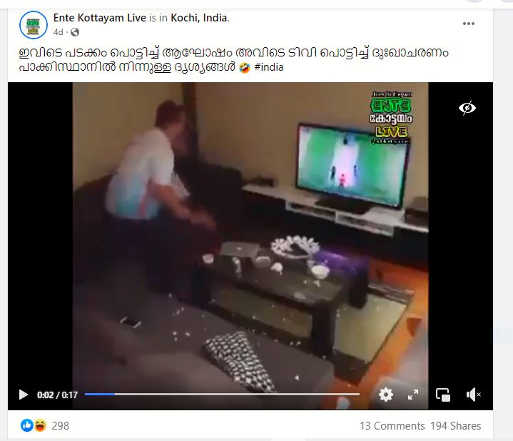 T20 വേൾഡ് കപ്പ് ക്രിക്കറ്റ് മത്സരത്തിൽ ഇന്ത്യയുടെ വിജയത്തിന് ശേഷം പാകിസ്ഥാൻകാരൻ തന്റെ ടെലിവിഷൻ സെറ്റ് തകർത്തു എന്ന ഫേസ്ബുക്ക് പോസ്റ്റ്.
