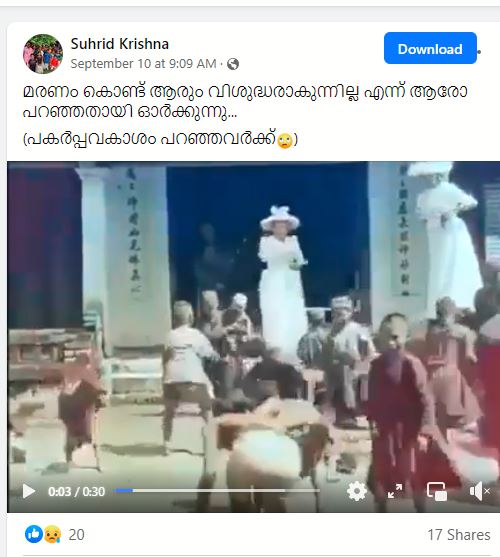 ”എലിസബത്ത് രാജ്ഞി കുട്ടികൾക്ക് ഭക്ഷണം എറിയുന്നു” എന്ന് അവകാശപ്പെടുന്ന വൈറൽ വീഡിയോയുടെ കീഫ്രെയിമുകളിൽ ന്യൂസ്ചെക്കർ Yandex റിവേഴ്സ് ഇമേജ് തിരയൽ നടത്തി.അത് 2021 ഒക്ടോബർ 7-ന് റഷ്യൻ വെബ്സൈറ്റ് VK-യിൽ കൊടുത്തിട്ടുള്ള ഇതേ വീഡിയോയുടെ ഒരു ചെറിയ പതിപ്പിലേക്ക് ഞങ്ങളെ നയിച്ചു. 13 സെക്കൻഡ് ദൈർഘ്യമുള്ള ക്ലിപ്പിന്റെ തലക്കെട്ട് ‘1899 | ഇന്തോചൈന (വിയറ്റ്നാം)’. പോസ്റ്റിന്റെ റഷ്യൻ അടിക്കുറിപ്പിന്റെ ഏകദേശം വിവർത്തനം ഇങ്ങനെയാണ് “ദാനധർമ്മ വിതരണം, വിയറ്റ്നാം, 1899” എന്നാണ്.
