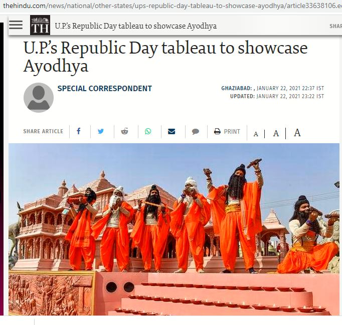 2021ലെ ഉത്തർപ്രദേശിന്റെ നിശ്ചല ദൃശ്യമാണ് മറ്റൊരു പടം എന്ന് റിവേഴ്സ് ഇമേജ് സെർച്ചിൽ മനസിലായി. അയോധ്യയായിരുന്നു ആ വർഷത്തെ ഉത്തർപ്രദേശിന്റെ ഇതിവൃത്തം. ഇതിനെ കുറിച്ച് ഹിന്ദു ദിനപത്രം ചെയ്ത റിപ്പോർട്ട് ഞങ്ങൾക്ക് കിട്ടി.