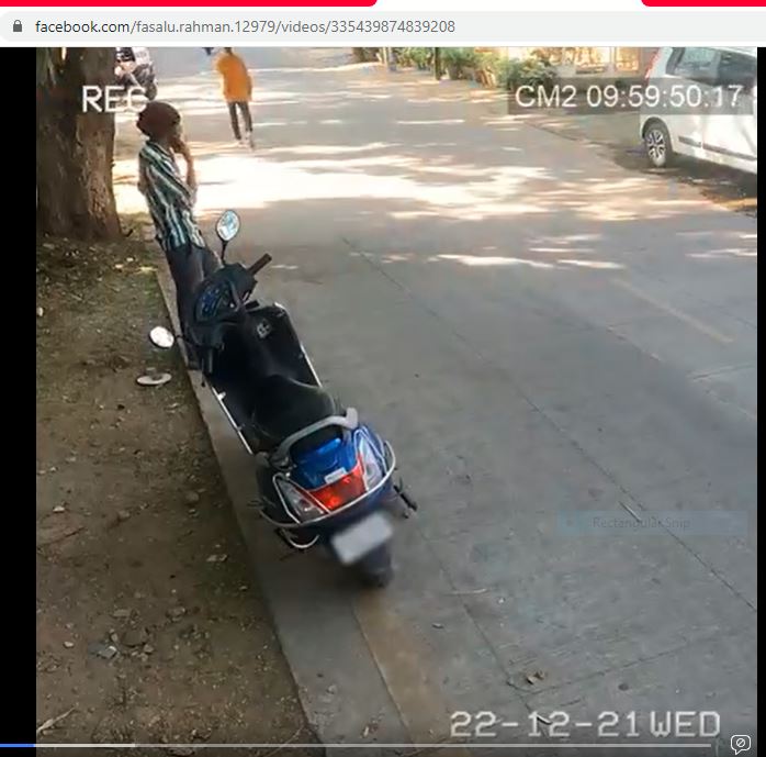 ഫേസ്ബുക്കിൽ വൈറലായ വീഡയോയുടെ കഥാഗതി ചുരുക്കി പറയാം.”ഒരാൾ സ്കൂട്ടറിന്റെ സൈലൻസറിനുള്ളിൽ തുണി തിരുകി വെക്കുന്നു. തുടർന്ന് അയാൾ തന്നെ സ്കൂട്ടറിന്റെ ഉടമയായ പെൺകുട്ടിയുടെ അടുത്ത എത്തുന്നു. സഹായം വാഗ്ദാനം ചെയ്യുന്നു. ഉടമയുടെ ശ്രദ്ധ മാറിയ ഉടനെ ഇയാൾ സ്കൂട്ടറുമായി കടന്നുകളയുന്നു.”