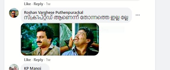 വീഡിയോയുടെ താഴെ തന്നെ ധാരാളം പേർ ഇത് സ്ക്രിപ്റ്റഡ് ആണ് എന്ന് സൂചിപ്പിച്ചിട്ടുണ്ട്. Roshan Varghese Puthenpurackal എന്ന ആൾ, “സ്ക്രിപ്റ്റ്ഡ് ആണെന്ന് തോന്നത്തെ ഇല്ലല്ലേ,” എന്ന് പരിഹാസ രൂപേണ ചോദിച്ചിരിക്കുന്നത് കാണാം. “ഒട്ടും artificiality തോന്നുന്നേ ഇല്ല,” “ഇത് ക്രീയേറ്റ് ചെയ്തതാണ്,” “Brilliant work,” “ഒട്ടും artificiality തോന്നുന്നേ ഇല്ല,” “ടെലി ഫിലിം ആണോ?” “തിരക്കഥ പോരാ,” തുടങ്ങിയ കമന്റുകളും കാണാം.