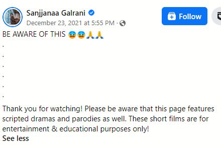 “കണ്ടതിന് നന്ദി! ഈ പേജിൽ സ്ക്രിപ്റ്റഡ് ഡ്രാമകളും പാരഡികളും ഉണ്ടെന്ന് ദയവായി ശ്രദ്ധിക്കുക. ഈ ഹ്രസ്വചിത്രങ്ങൾ വിനോദത്തിനും വിദ്യാഭ്യാസ ആവശ്യങ്ങൾക്കും മാത്രമുള്ളതാണ്!,” എന്ന ഒരു ഡിസ്ക്ലെയിമർ വീഡിയോയ്ക്ക് ഒപ്പം കൊടുത്തിട്ടുണ്ട്.