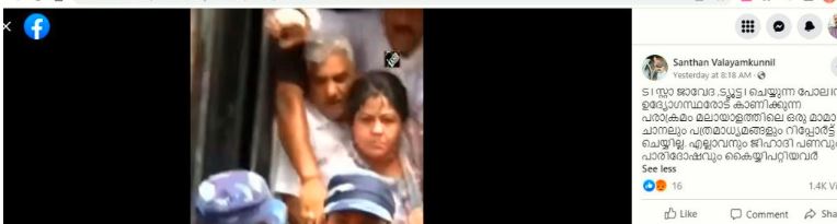 ”ടിസ്റ്റാ ജാവേദ്,ഡ്യൂട്ടി ചെയ്യുന്ന പോലിസ് ഉദ്യോഗസ്ഥരോട് കാണിക്കുന്ന പരാക്രമം. മലായാളത്തിലെ ഒരു മാമാ ചാനലും പത്രമാധ്യമങ്ങളും റിപ്പോർട്ട് ചെയ്യില്ല. എല്ലാവനും ജിഹാദി പണവും പാരിതോഷികവും കൈ പറ്റിയവർ,”എന്ന അടിക്കുറിപ്പോടെയാണ് വീഡിയോ ഫേസ്ബുക്കിൽ ഷെയർ ചെയ്തിരിക്കുന്നത്.