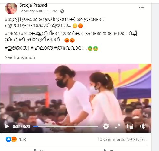Sreeja Prasad എന്ന ഐഡിയിൽ നിന്നുള്ള പോസ്റ്റ് ഞങ്ങൾ പരിശോധിക്കുമ്പോൾ 99 ഷെയറുകൾ ഉണ്ടായിരുന്നു.