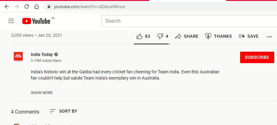 ഈ വീഡിയോയുടെ യൂട്യുബിലെ വിവരണം അനുസരിച്ചു, ഗബ്ബയിലെ ഇന്ത്യയുടെ ചരിത്ര വിജയത്തിനു ശേഷം എല്ലാ ക്രിക്കറ്റ് ആരാധകരും ടീം ഇന്ത്യയ്ക്ക് വേണ്ടി ആർപ്പ് വിളിച്ചു. ഈ ഓസ്ട്രേലിയൻ ആരാധകന് പോലും ഓസ്ട്രേലിയയിൽ ടീം ഇന്ത്യയുടെ മാതൃകാപരമായ വിജയത്തെ സല്യൂട്ട് ചെയ്യാതിരിക്കാനായില്ല.