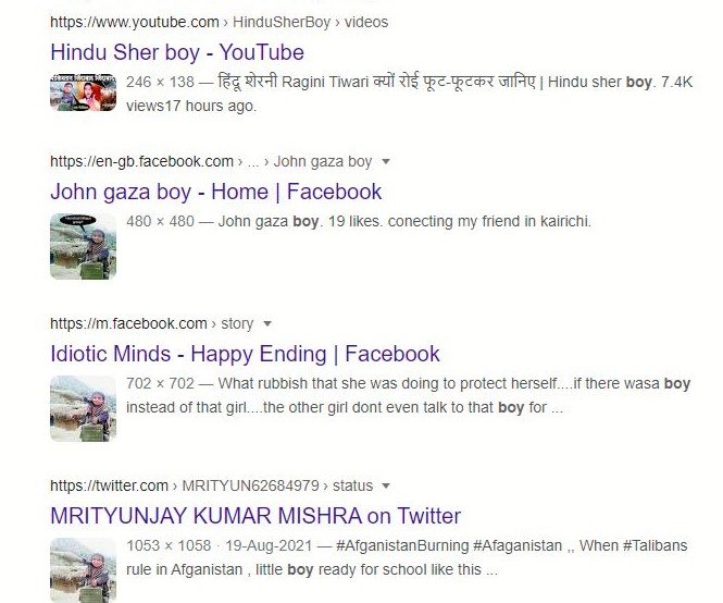 ഈ ഫോട്ടോ താലിബാൻ അധിനിവേശത്തിനു ശേഷം അഫ്ഗാനിസ്ഥാനിൽ നിന്നുള്ളതല്ല. ഈ ഫോട്ടോ ഇന്ത്യ വിരുദ്ധ പരാമർശങ്ങളോടെ 2019 മുതൽ പാകിസ്ഥാനിൽ നിന്നുള്ള വിവിധ ഫേസ്ബുക്ക് പ്രൊഫൈലുകളും ട്വീറ്റർ ഹാൻഡിലുകളും ഷെയർ ചെയ്തിട്ടുണ്ട്.