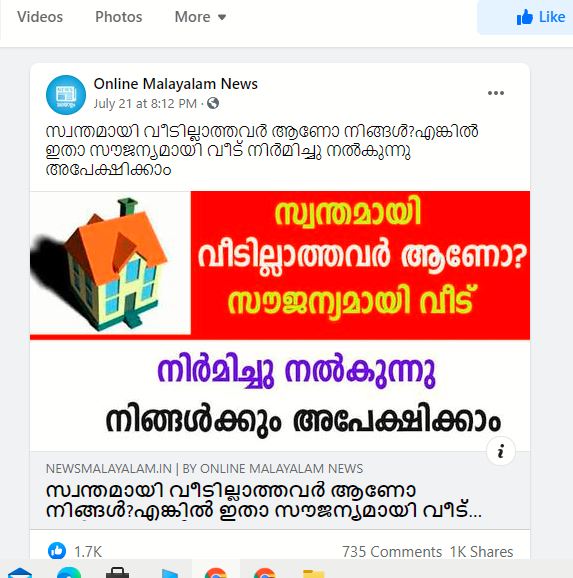 അവരുടെ ഫേസ്ബുക്ക് പേജിലും ആ വാർത്ത ഷെയർ ചെയ്തിട്ടുണ്ട്. ആ പോസ്റ്റിനു 1.7k റീയാക്ഷനും 996 ഷെയറുകളും ഇതുവരെ ലഭിച്ചിട്ടുണ്ട്.