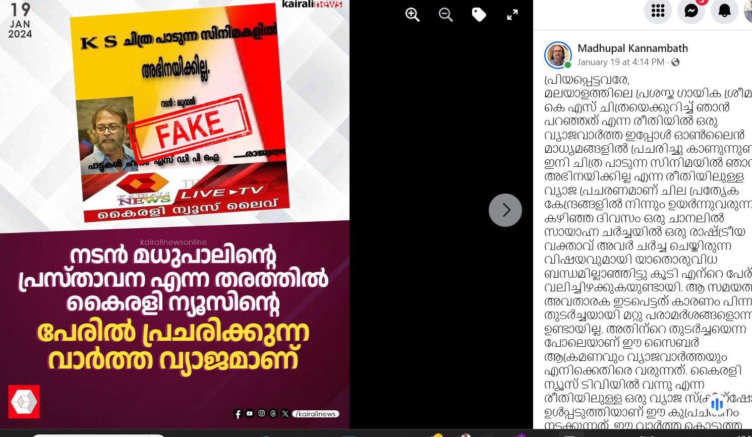 Facebook Post by Madhupal Kannambath on January 19, 2024