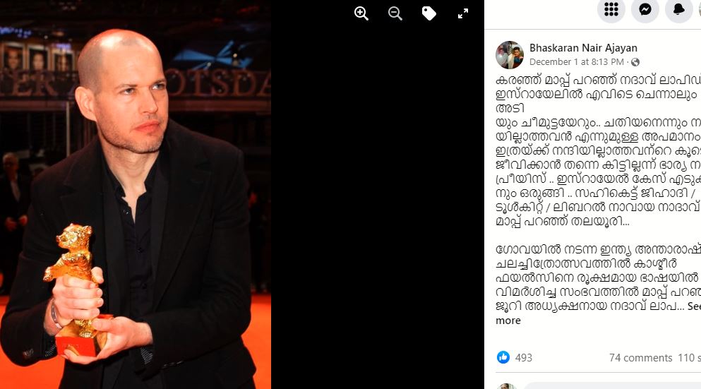 മലയാളത്തിലും ധാരാളം പേർ നദവ് ലാപിഡ് മാപ്പ് പറഞ്ഞതായി അവകാശപ്പെട്ട് രംഗത്ത് വന്നു. ഞങ്ങൾ കാണും വരെ Bhaskaran Nair Ajayan എന്ന പ്രൊഫൈനലിൽനിന്നുള്ള പോസ്റ്റിന് 110 ഷെയറുകൾ ഞങ്ങൾ കാണും വരെ ഉണ്ടായിരുന്നു.
