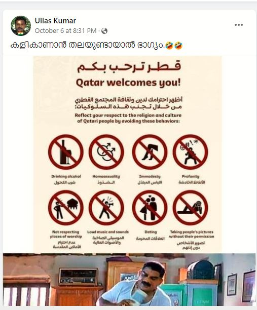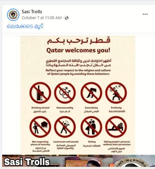 ഖത്തറി സംസ്കാരത്തെ “ബഹുമാനിക്കാൻ” വിദേശികളെ ഓർമ്മിപ്പിക്കുന്നതിനായി ഒരു സിറ്റിസൺസ് ഗ്രൂപ്പാണ് വൈറൽ ഇൻഫോഗ്രാഫിക് പുറത്തിറക്കിയതെന്നും ഇത് ഖത്തർ സന്ദർശിക്കുന്ന ലോകകപ്പ് ആരാധകർക്ക് ഖത്തർ സർക്കാരോ യോ ഫിഫയോ നൽകിയ ഔദ്യോഗിക ഉപദേശമല്ലെന്നും ഇതിൽ നിന്നും മനസിലായി.