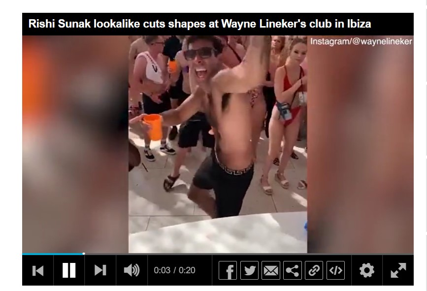 “വീഡിയോ എപ്പോഴാണ് എടുത്തതെന്നോ സുനക്കിന്റെ രൂപസാദൃശ്യമുള്ള ആൾ ആരെന്നോ വ്യക്തമല്ല. എന്നാൽ സ്പാനിഷ് പാർട്ടി ദ്വീപിലെ മിസ്റ്റർ ലിനക്കറുടെ ഒ ബീച്ച് ഐബിസ ക്ലബ്ബിൽ നിന്നാണ് ഈ ദൃശ്യങ്ങൾ എടുത്തതെന്ന് തോന്നുന്നു,” റിപ്പോർട്ട് പറയുന്നു.