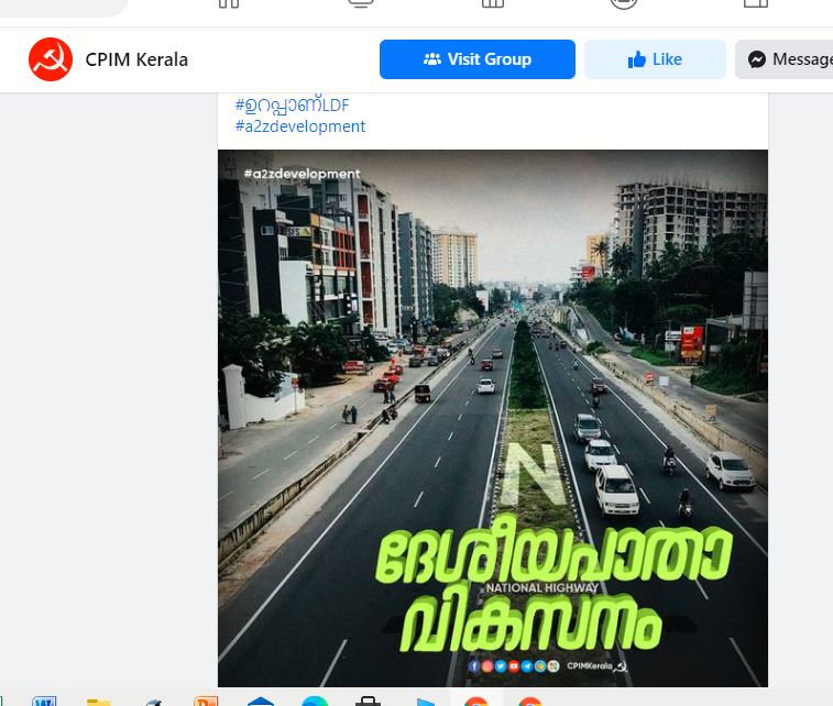ഈ മാർച്ചിൽ സിപിഎമ്മിന്റെ ഔദ്യോഗിക പേജിൽ കാസർഗോഡ് നിന്നുമുള്ള പാത ആറുവരി പാതയാക്കുന്ന കാര്യം വിശദമായി പ്രതിപാദിച്ചിരുന്നു.ഭൂവുടമകൾക്ക് ന്യായമായ നഷ്ടപരിഹാരം ഉറപ്പാക്കുന്നതിനായി നഷ്ടപരിഹാരത്തുകയുടെ 25 % തുക സംസ്ഥാന സർക്കാർ ഏറ്റെടുത്ത കാര്യം അവർ മാർച്ച് 17നു വിശദമായി ഒരു ഫേസ്ബുക്ക് പോസ്റ്റിൽ പറഞ്ഞിരുന്നു. സംസ്ഥാനവികസനത്തിൽ ഈ പദ്ധതിയുടെ പ്രാധാന്യം തിരിച്ചറിഞ്ഞുള്ള സമീപനമാണ് ഇക്കാര്യത്തിൽ കേരളസർക്കാർ കൈക്കൊണ്ടത്. കേരളത്തിന്റെ പശ്ചാത്തലവികസന എഞ്ചിനായ കിഫ്ബി വഴി ഭൂമി ഏറ്റെടുക്കുന്നതിലേക്കായി ഇതിനകം 600 കോടിയിലേറെ രൂപ കൈമാറിയിട്ടുണ്ട് എന്നും അന്ന് വിശദീകരിച്ചിരുന്നു.
