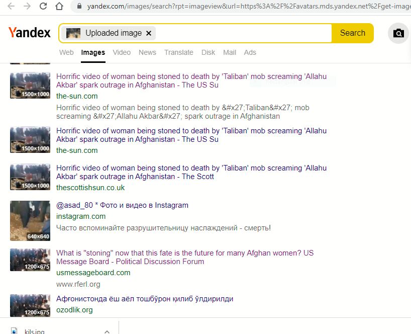 ഈ വീഡിയോയിലെ ഒരു കീ ഫ്രെയിം എടുത്തു ഞങ്ങൾ ഗൂഗിൾ റിവേഴ്സ് ഇമേജ് സേർച്ച് ചെയ്തു. അപ്പോൾ യാൻസെക്സിൽ ചില വെബ്സൈറ്റുകളിൽ ഈ ദൃശ്യം കൊടുത്തിരിക്കുന്നതായി കണ്ടു.
