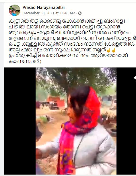 വീഡിയോയുടെ ആധികാരികത പരിശോധിക്കാൻ, ന്യൂസ്ചെക്കർ ‘Child kidnapping in a suitcase’, എന്ന കീവേഡുകൾ ഉപയോഗിച്ച് ഫേസ്ബുക്കിൽ ഒരു കീവേഡ് തിരയൽ നടത്തി, നിരവധി പോസ്റ്റുകൾ കണ്ടെത്തി.