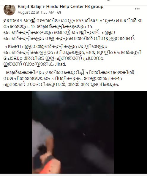 Ranjit Balaji എന്ന ആൾ Hindu Help Center FB group എന്ന ഗ്രൂപ്പിലിട്ട പോസ്റ്റ് ഞങ്ങൾ കാണുമ്പോൾ അതിന് 157 ഷെയറുകൾ ഉണ്ടായിരുന്നു.