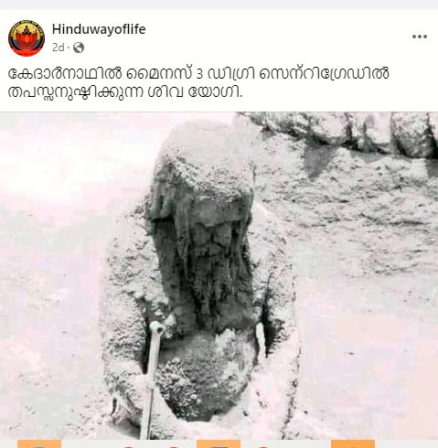‘കേദാർനാഥിൽ മൈനസ് 3 ഡിഗ്രി സെന്റിഗ്രേഡിൽ തപസ്സനുഷ്ഠിക്കുന്ന ശിവ യോഗി,’ എന്ന പേരിൽ ഒരു ഫേസ്ബുക് പോസ്റ്റ്.