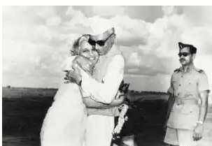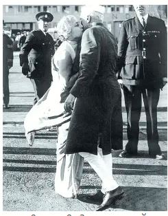 ജവഹർലാൽ നെഹ്റുവിനൊപ്പമുളളത് റഷ്യയില് ഭാരതത്തിന്റെ പ്രതിനിധിയായിരുന്ന സഹോദരി വിജയലക്ഷ്മി പണ്ഡിറ്റ്. ഡല്ഹി എയര്പോര്ട്ടില് എത്തിയപ്പോള് കെട്ടി പിടിക്കുന്ന ഈ ചിത്രവും ഫോട്ടോഗ്രാഫര് ഹോമി വ്യാരാവാല എടുത്തതാണ്.