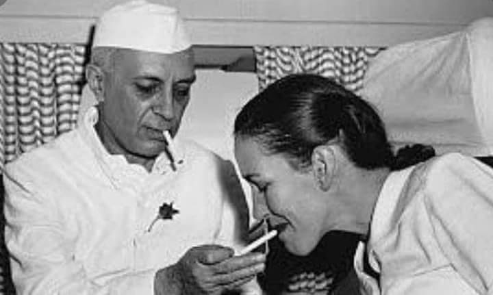 ജവഹർലാൽ നെഹ്റു ഒരു സിഗരറ്റ് കത്തിക്കുന്ന ചിത്രമാണിത്.