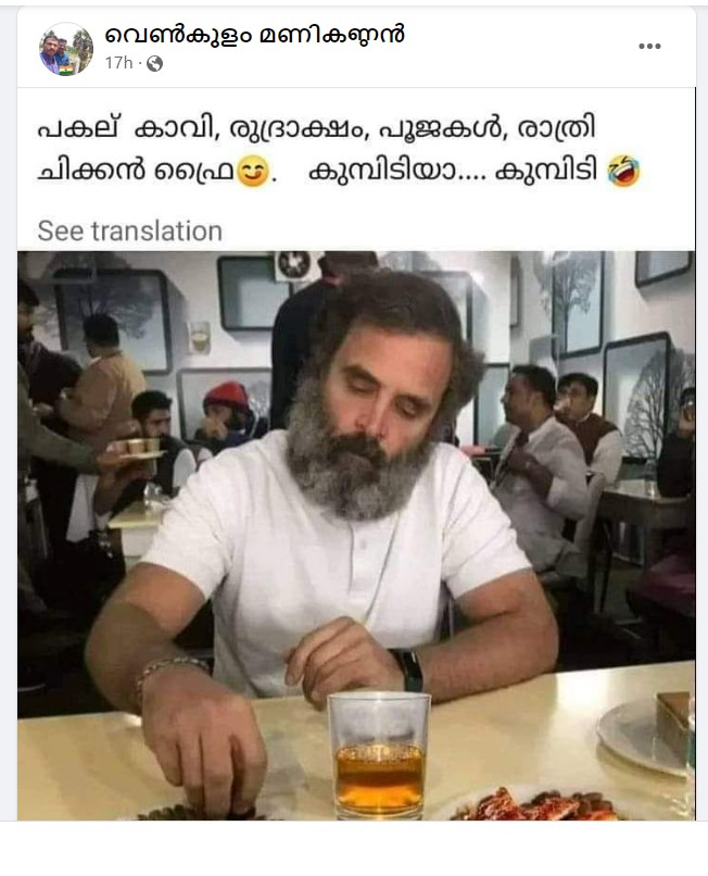 രാഹുൽ ഗാന്ധി നോൺ വെജിറ്റേറിയൻ ഭക്ഷണവും മദ്യവും കഴിക്കുന്നതായി കാണിക്കുന്ന ഫോട്ടോ വ്യാജമാണ്