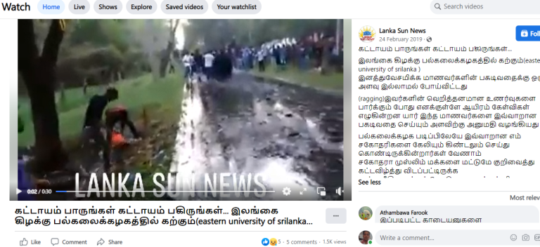 ശ്രീലങ്കയിലെ ഈസ്റ്റേൺ യൂണിവേഴ്സിറ്റിയിലെ വിദ്യാർത്ഥികൾ ഇത് റാഗിങ്ങുമായി ബന്ധപ്പെട്ട സംഭവമാണെന്ന് സ്ഥിരീകരിച്ചതായി റിപ്പോർട്ട് അവകാശപ്പെട്ടുന്നു.