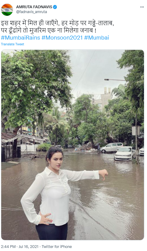 Tweet made by Amruta Fadnwis on 16 July,2021