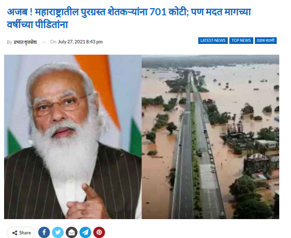 याशिवाय दैनिक प्रभातच्या वेबसाईटवरील बातमीत देखील 700 कोटीची मदत ही मागील वर्षीच्या पुरग्रस्तांसाठी असल्याचे म्हटले आहे.