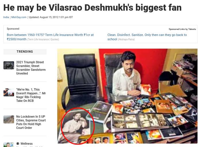NDTV- https://www.ndtv.com/india-news/he-may-be-vilasrao-deshmukhs-biggest-fan-496895