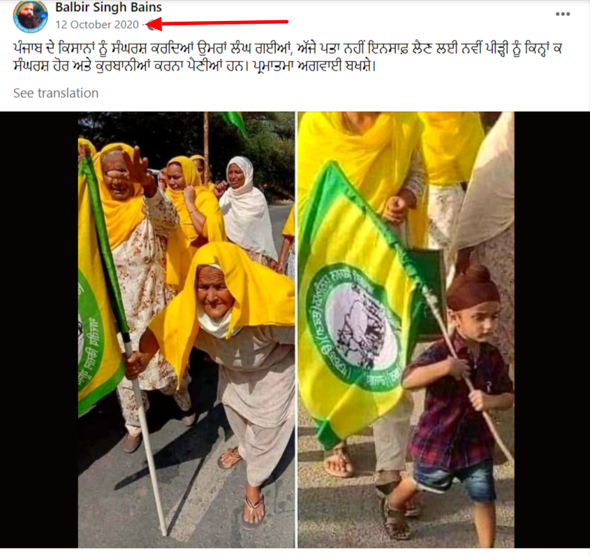 काही पंजाबी कीवर्ड वापरून फेसबुक वर शोध घेतला असता, आम्हाला ऑक्टोबर 2020 मध्ये व्हायरल प्रतिमेसह शेअर केलेल्या काही इतर पोस्ट आढळल्या, जे केंद्र सरकारने तीन कृषी कायदे मागे घेतल्यानंतरचा हा फोटो नसल्याची पुष्टी करतात.