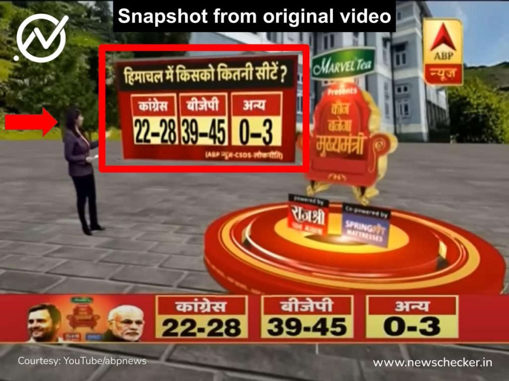 30 ऑक्टोबर 2017 रोजी एबीपी न्यूजने प्रकाशित केलेल्या या ओपिनियन पोलनुसार,संस्थेने भाजपला 39-45 जागा आणि काँग्रेसला 22-28 जागा मिळण्याचा अंदाज वर्तवला होता. व्हिडिओच्या या भागाचे व्हिज्युअल आणि ऑडिओ संपादित करून 2022 च्या हिमाचल प्रदेश विधानसभा निवडणुकीत काँग्रेसच्या विजयाचा दावा केला जात आहे.