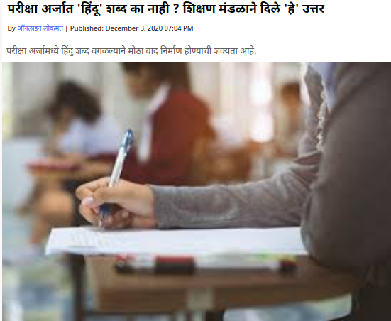 परीक्षा अर्जामध्ये हिंदू शब्द वगळल्याच्या पार्श्वभुमीवर मंडळाने हे स्पष्टिकरण दिल्याचे बातमीत म्हटले आहे.